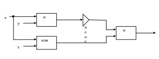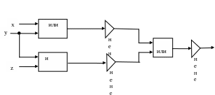6. Записать формулу логической функции, соответствующую приведенной схеме из функциональных элементов. Упростить формулу. Построить схему, соответствующую упрощенной формуле.