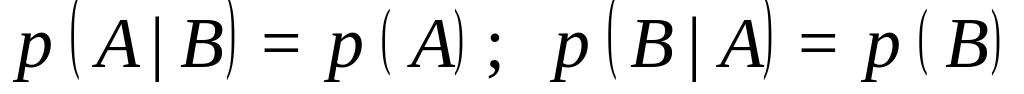 Смысл определения независимости событий заключается в том, что если произошло одно из независимых событий, то это никак не влияет на вероятность появления другого события.