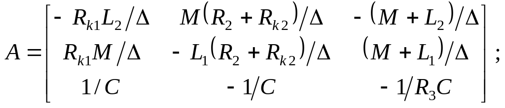 Объединение уравнений ИСЭ и уравнений Кирхгофа дает требуемую форму уравнений состояния (1), для которых матрицы А и В имеют вид