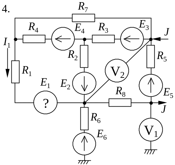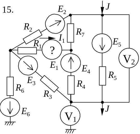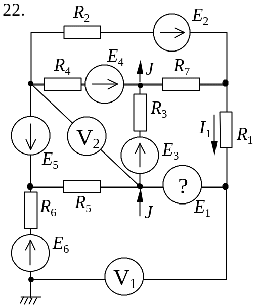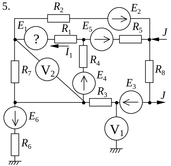 Подставив значения сопротивлений, ЭДС и токов I22=I1=3 A и J=2 A, после выполнения всех действий и упрощения получаем: