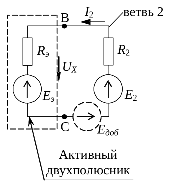 где UX – разность потенциалов между точками В и С электрической цепи при отключении второй ветви;