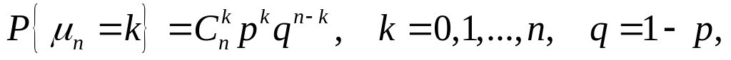 Нехай – число успіхів у n незалежних випробуваннях Бернуллі з ймовірністю успіху p у кожному випробовуванні. Таким чином