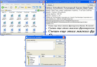 Для установки нового шрифта надо дать команду Файл ► Установить новый шрифт. Откроется диалоговое окно "Добавление шрифтов".