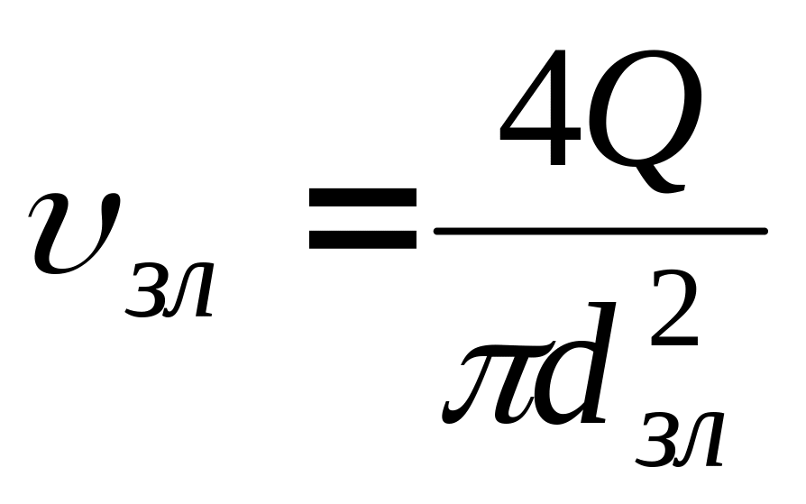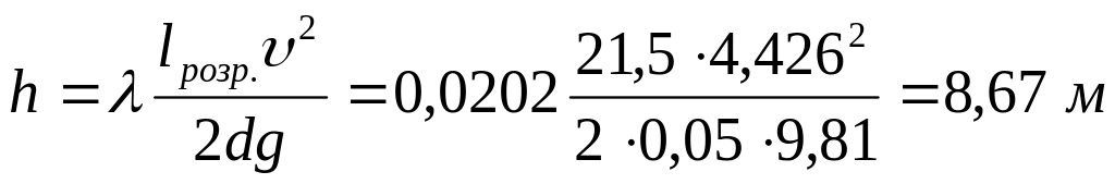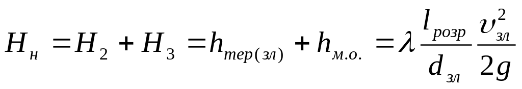 де – коефіцієнт гідравлічного тертя; lрозр. = lзл + lекв – розрахункова довжина зливного трубопроводу; зл – швидкість течії.