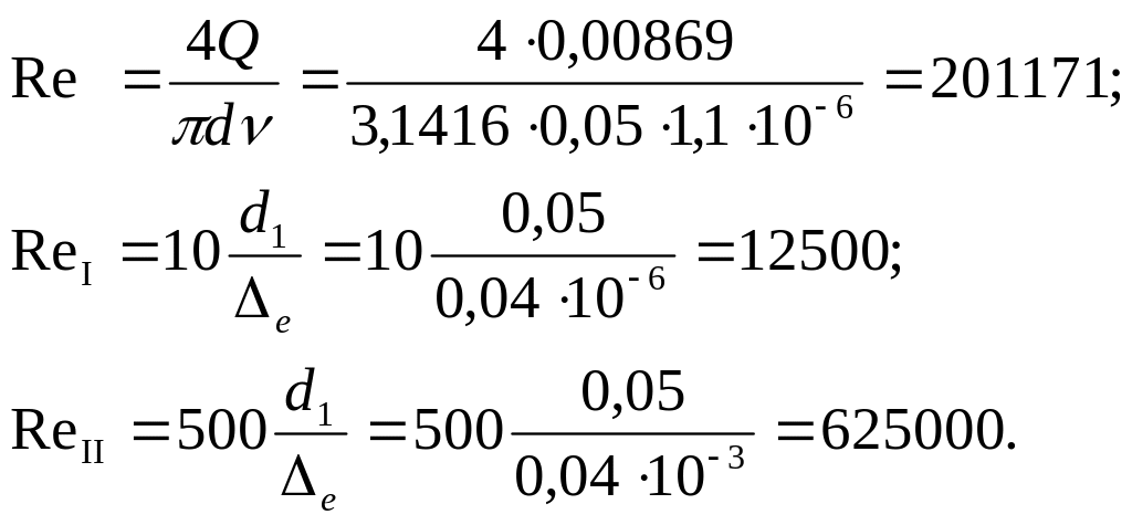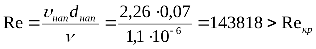Оскільки режим турбулентний, то визначимо перехідні числа Рейнольдса: