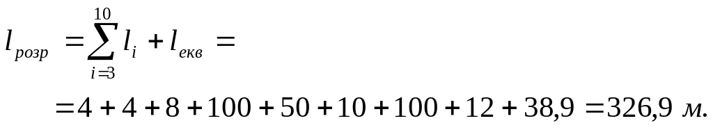 Відповідь: hм.о.= 2,71 м; lекв = 38,9 м; lрозр = 326,9 м.