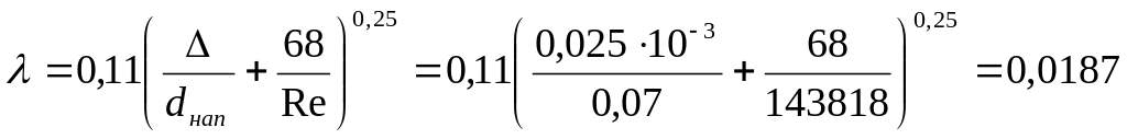 Оскільки ReI < Re < ReII, то для визначення використовуємо формулу Альтшуля: