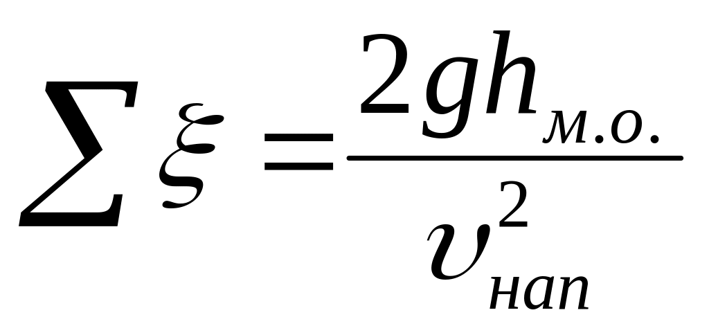 Знаючи втрати hм.о., знаходимо сумарний коефіцієнт місцевих опорів: