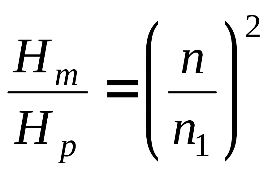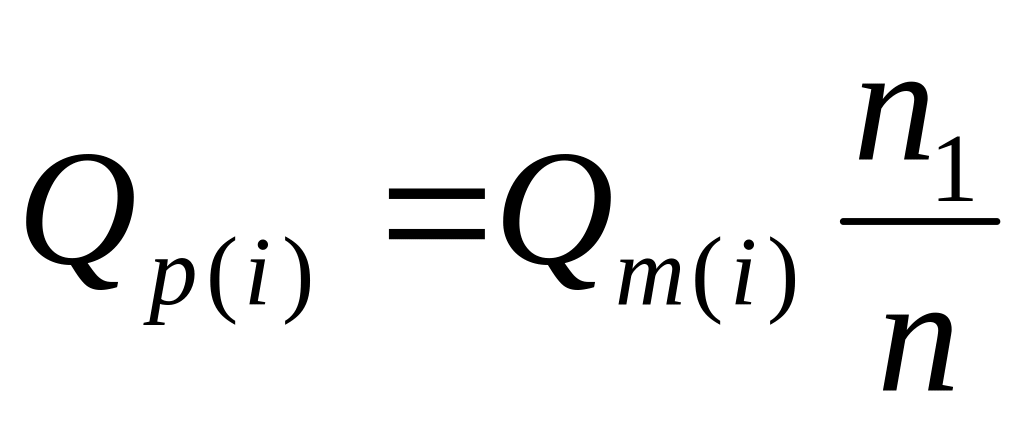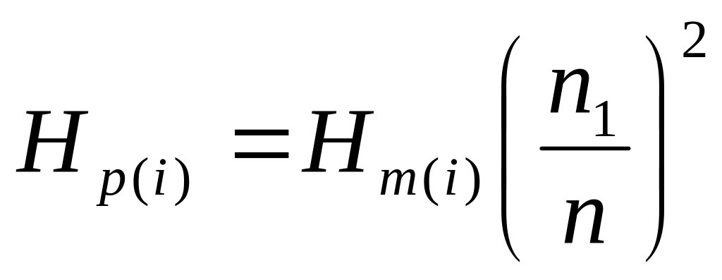 Перерахунок характеристики насоса на нове число обертів n1 здійснюється в такій послідовності: для кожного значення Qi(т), взятих з таблиці 1.6 вираховують Hi для відомих чисел обертів n1 і n: