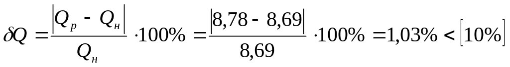 Визначимо відхилення параметрів отриманої робочої точки від необхідних параметрів роботи циркуляційної установки:
