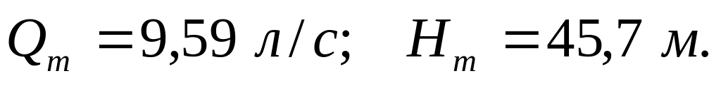 Перетин характеристик трубопроводу і насоса дає нам теоретичну робочу точку насосної установки з координатами (Qт, Hт).