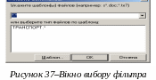 Фільтр..-відкриває діалогове вікно, в якому визначаються типи файлів, які необхідно відобразити і які відокремлені крапкою з комою ";" (рис.37).
