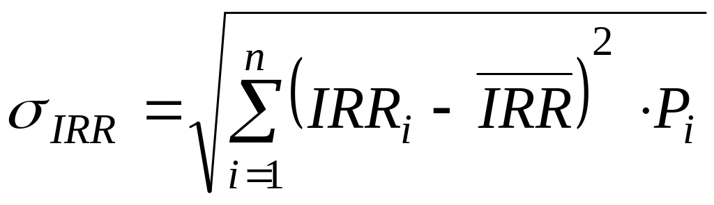 На практике для прогноза доходности часто используются ретроспективные (прошлые) данные по аналогичным проектам. В этом случае для расчета среднего квадратического отклонения доходности IRR применяется формула: