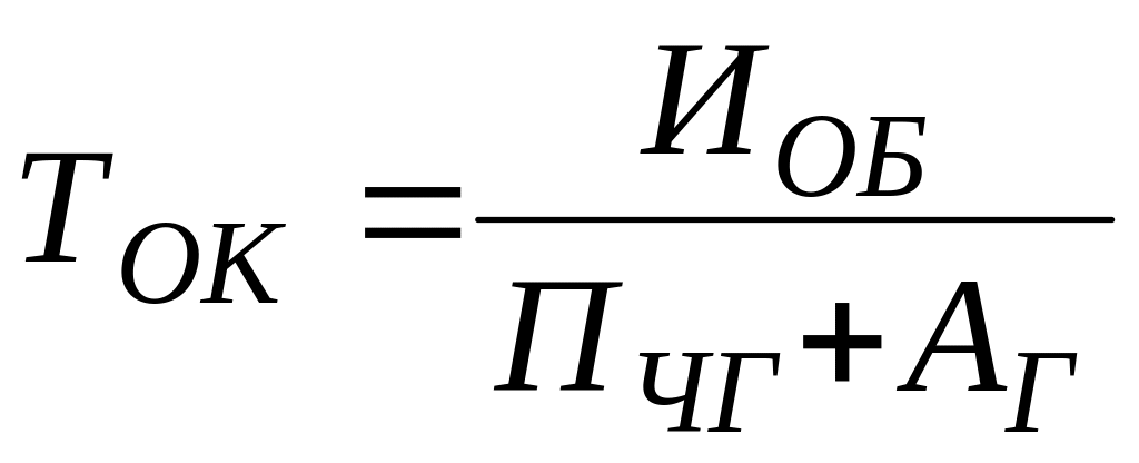 При неравномерном поступлении денежных доходов по годам срок окупаемости будет равен числу лет, за которые суммарные денежные поступления (ПЧГ и АГ) превысят общую сумму инвестиций ИОБ.
