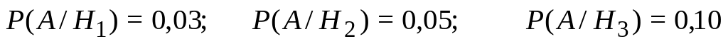 Кроме того, известны вероятности некоторого события А, которое может произойти совместно с каждой гипотезой.