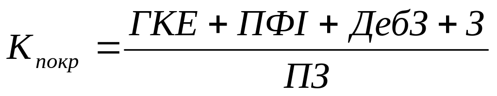 3. Коефіцієнт покриття, або коефіцієнт поточної ліквідності, характеризує здатність підприємства погасити поточні зобов'язання протягом періоду, що дорівнює тривалості обороту його оборотних активів. У цьому разі розглядається не тільки забезпечення своєчасних розрахунків з дебіторами та реалізації готової продукції, а й продажу в результаті потреби інших оборотних засобів (сировини, матеріалів тощо). Розраховують цей коефіцієнт за формулою