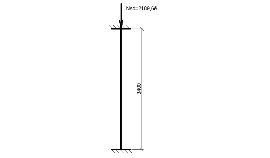 Расчетная схема колонны представляет собой балку, защемленную по обоим концам и нагруженную силой Nsd, приложенной по оси колонны.
