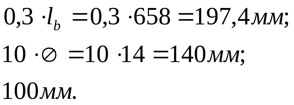 Стыкуемые в пролетах стержни (стержни верхней продольной арматуры второстепенной балки) необходимо завести друг за друга на величину нахлеста равную длине анкеровки большего диаметра стыкуемых стержней. Длина анкеровки определяется по выражению (3.21).