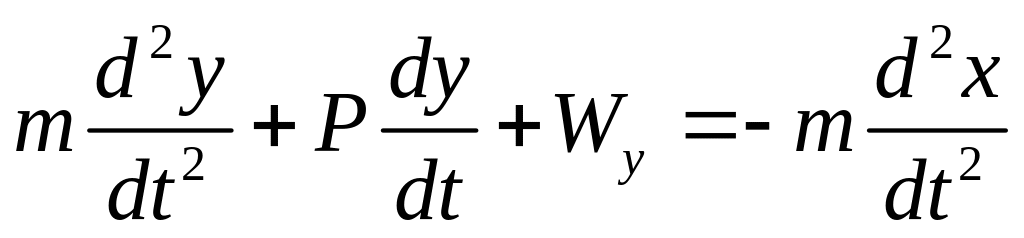 Вичерпною характеристикою динаміки роботи віброперетворювача є його диференціальне рівняння, яке для класичної інерціальної системи, що складається з інерційної маси т, закріпленої до пружини з питомим протидійним моментом W при наявності заспокоювача з коефіцієнтом заспокоєння Р має вигляд: