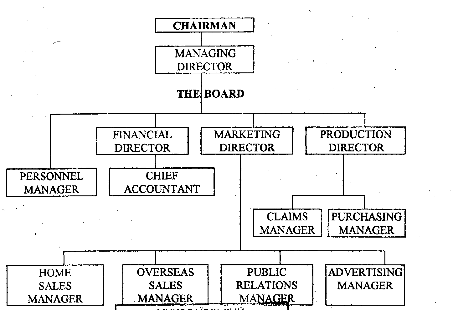 The Managing Director (sometimes called the Chief Executive or President) is the head of the company. The company is run by a Board of Directors; each Director is in charge of a department. However, the Chairman of the Board is in overall control and may not be the head of anyone department. Most companies have Finance, Sales, Marketing (sometimes part of Sales), Production, Research and Development (R & D) and Personnel Departments. These are the most common departments, but some companies have others as well. Most departments have a Manager, who is in charge of its day-to-day running, and who reports to the Director; the Director is responsible for strategic planning and for making decisions. Various personnel in each department report to the Manager. One example, present in almost all companies, is the Sales Representative, who reports to the Sales Manager.