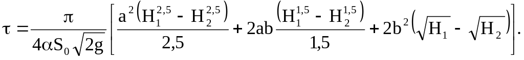 В случае полного опорожнения резервуара H2 = 0 и уравнение ( 4 ) принимает вид