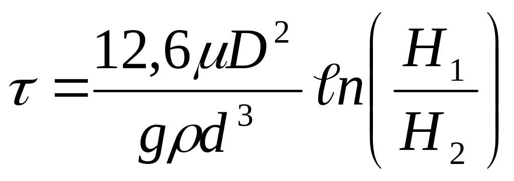 Таким образом, время опорожнения сосуда, имеющего постоянное поперечное сечение, от высоты H1 до высоты H2 составляет