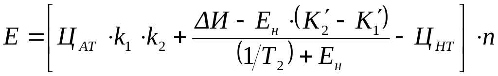 Згідно з діючою методикою встановлення економічної ефективності впровадження нової техніки в нафтогазовій галузі річний економічний ефект від виробництва і використання нового обладнання, машин, інструментів та інших засобів праці довгострокового використання з поліпшеними якісними характеристиками визначається за такою формулою: