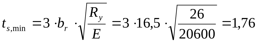 ts – товщина опорного ребра.