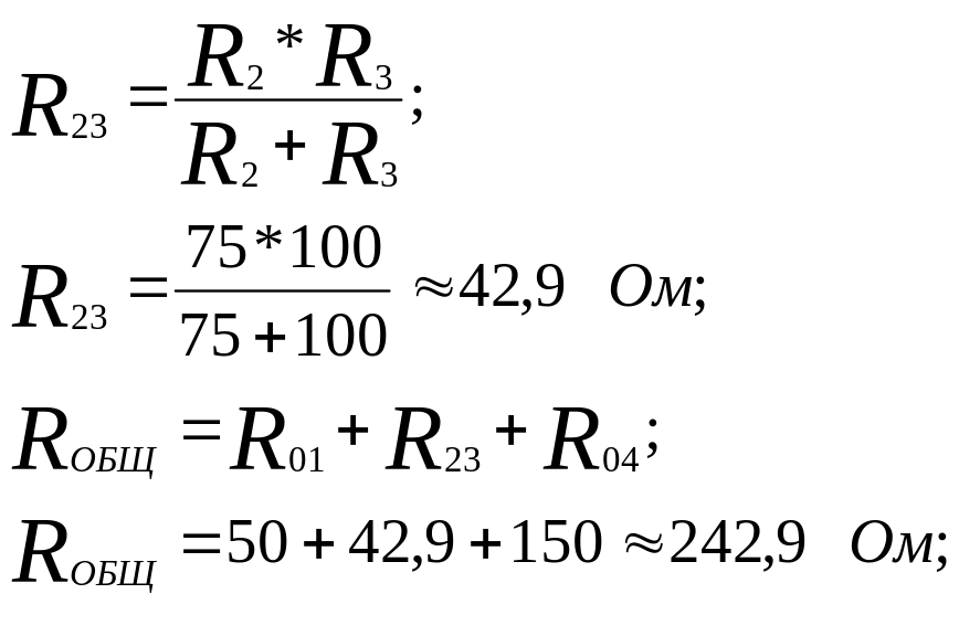 Резисторы R02 и R03 соединены параллельно, поэтому мы можем заменить их одни резистором R23 по формуле: