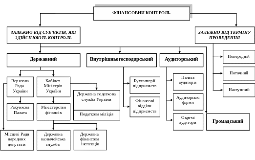 державний, внутрішньогосподарський, аудиторський, громадський;