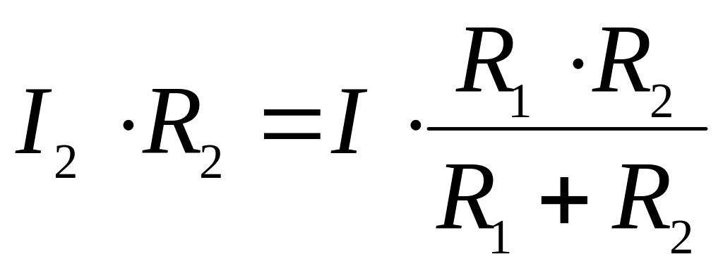 Для того чтобы найти «собственный» ток (то есть ток через рассматриваемую ветвь) необходимо ток в неразветвленной части цепи умножить на «чужое» сопротивление (то есть сопротивление параллельной ветви) и разделить на сумму «своего» и «чужого» сопротивлений.