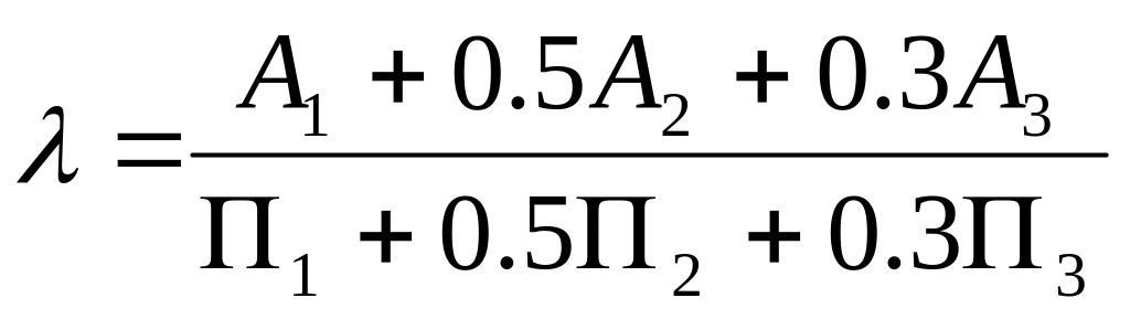Для комплексної оцінки ліквідності балансу в цілому варто використовувати загальний показник ліквідності балансу. Загальний показник ліквідності показує відношення всієї суми ліквідних засобів підприємства до суми всіх платіжних зобов'язань за умови, що різні групи ліквідних засобів підприємства і платіжних зобов'язань входять у зазначені суми з ваговими коефіцієнтами, що враховують їхня значимість з погляду термінів надходження засобів і погашення зобов'язань. Даний показник дозволяє порівнювати баланси підприємства за різні періоди, а також баланси різних підприємств. Для комплексної оцінки ліквідності балансу пропонується наступна формула: