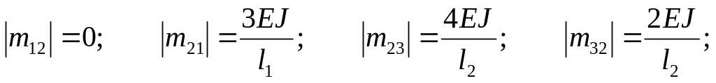 Для определения коэффициентов распределения и коэффициентов переноса К рассматриваем пролёты попарно. При повороте средней опоры на единичный угол ( = 1) возникают единичные уравновешивающие моменты и вторичные моменты защемления . Учитывая принятые в разделе 1.3 условности, все возникающие моменты имеют один знак, поэтому для расчета и К используют модули моментов.