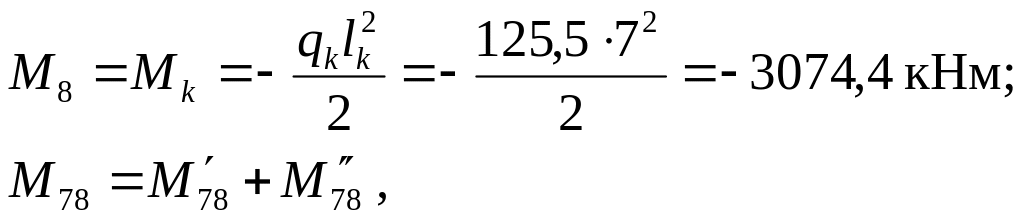 Величины, входящие в формулы, определены ранее при расчёте опорных моментов защемления М56 и М65: