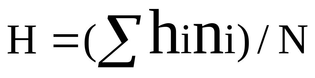 где Н - средняя высота подроста каждого вида, м; hi - средняя высота растений i-й высотной группы, м; ni - количество растений i-й высотной группы, шт.; N - общее количество особей подроста данного вида, шт.