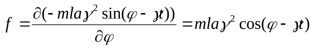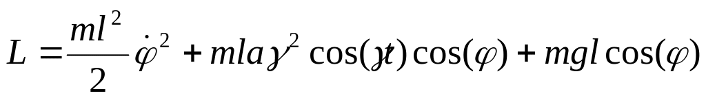 где m – масса груза, g – ускорение свободного падения, l – длина нити, угловая переменная осцилляций (отклонение от вертикали).