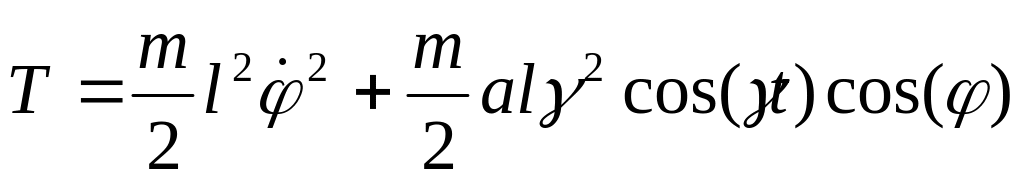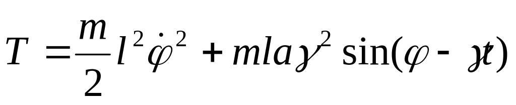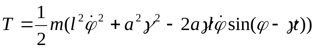 Подставляем в выражение для кинетической энергии и опускаем все полные производные по времени: