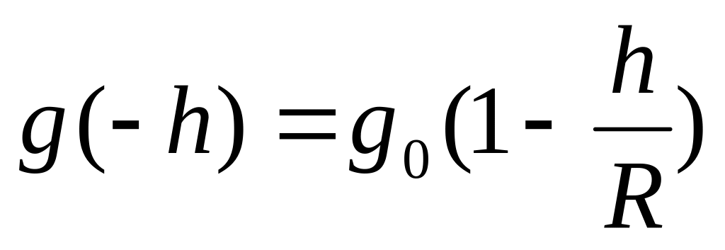 где h- высота над поверхностью Земли, R- ее радиус. При опускании тела в глубь Земли характер зависимости g от расстояния меняется: