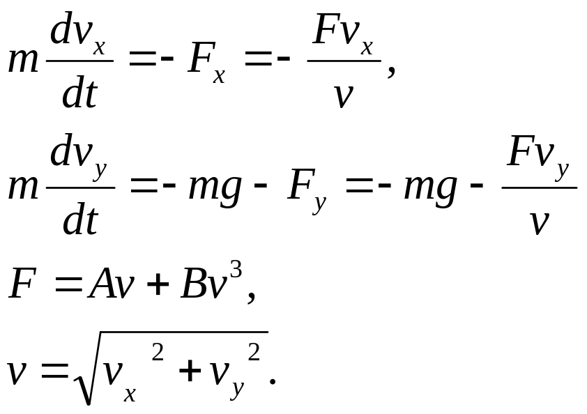 Указание. Уравнения движения по координатным осям имеют вид [8]: