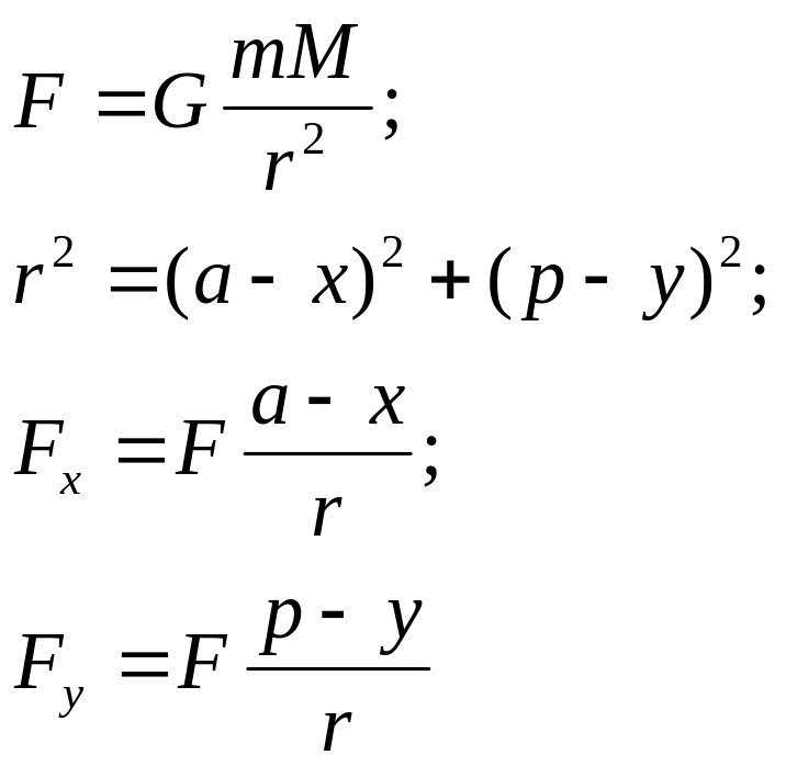 F – сила тяготения;