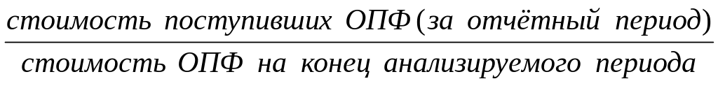 Данный коэффициент характеризует долю новых (поступивших) ОПФ за отчётный период.