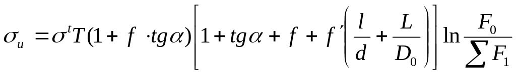 Такая сложная зависимость усилия прессования от различных условий затрудняет вывод точных расчетных формул. Наибольшее распространение получили следующие формулы С.И. Губкина для расчета удельного давления истечения: