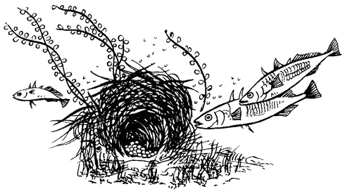 Рис. 37. Трёхиглые колюшки возле гнезда