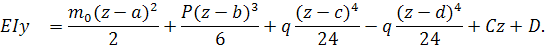 Пусть балка, изображенная на рис. 14, подвержена действию нагрузок т0, Р и q. Составим дифференциальное уравнение для последнего участка: