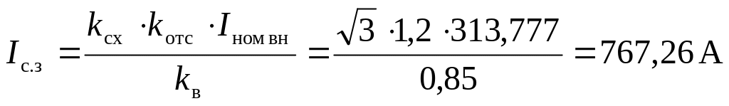 kв = 0,85 – минимальный коэффициент возврата реле.