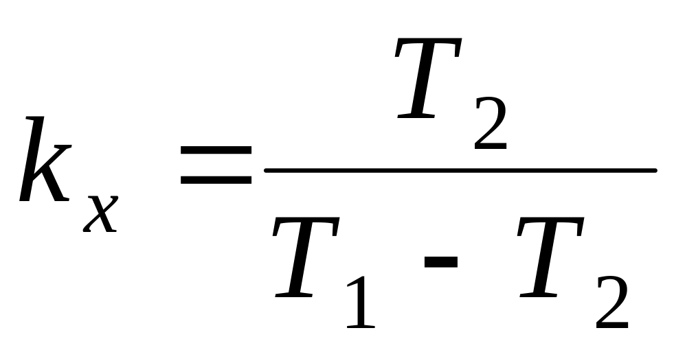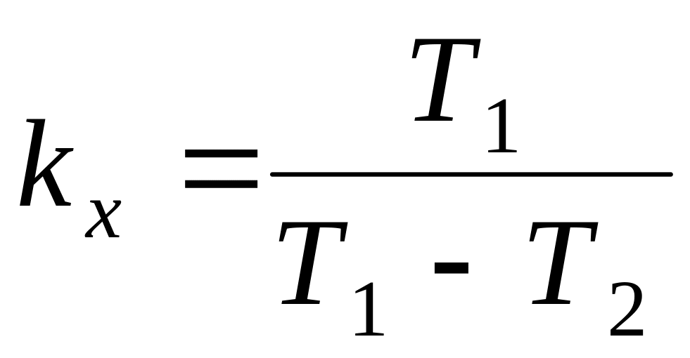Цикл Карно, проведенный в обратном направлении, характеризуется холодильным коэффициентом, значение которого рассчитывается по формуле.
