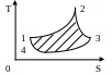 Указать графически количество тепла, полученного за прямой цикл из двух изохорных и двух адиабатных процессов.
