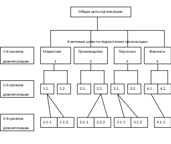 Декомпозиция цели(дерево цели) — это расчленение, разъединение цели на составные части, подцели. Однако в процессе декомпозиции не должна нарушаться целостность цели, все части общей цели должны представлять собой иерархическую структуру.