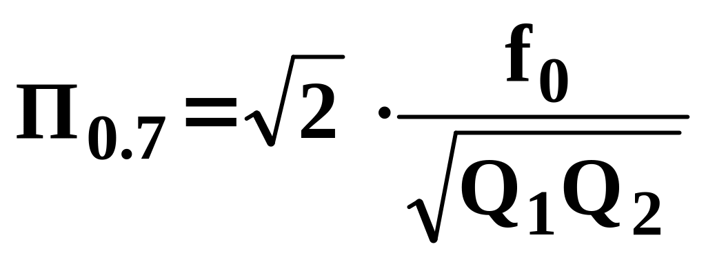 Максимально допустимая величина произведения нагруженных добротностей контуров рассчитывается из условия получения полосы пропускания больше рабочей полосы частот. Если исходить из уплощенной АЧХ двух связанных контуров с фактором связи А=1, формула для расчета полосы пропускания по уровню 0.7 иметь вид