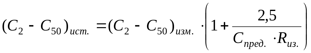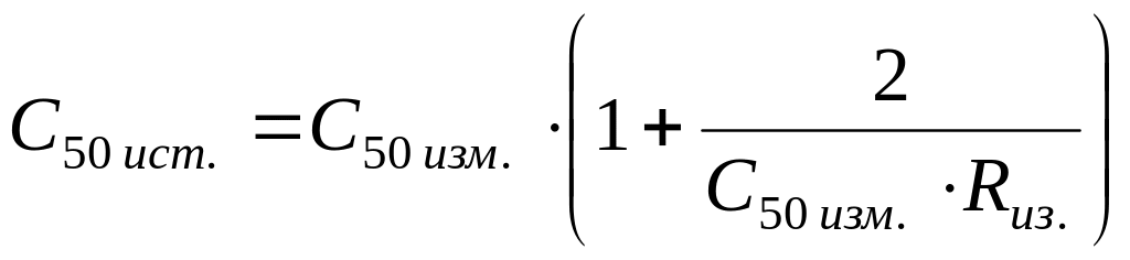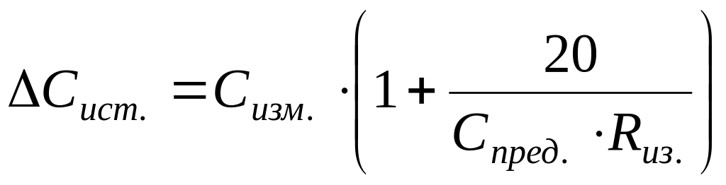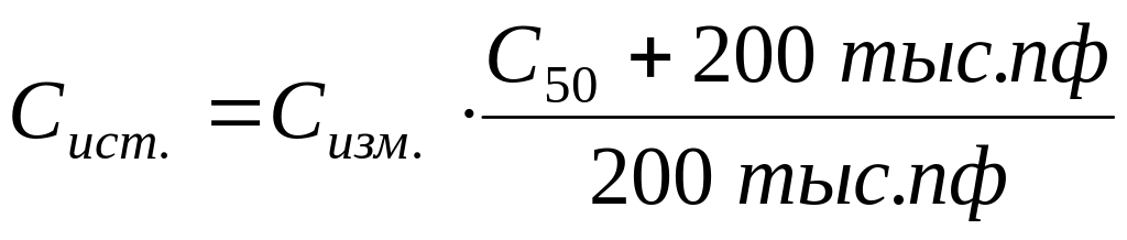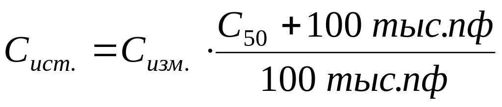 В этих случаях истинная величина емкости определяется по следующим формулам: для предела “1 тыс.пф”